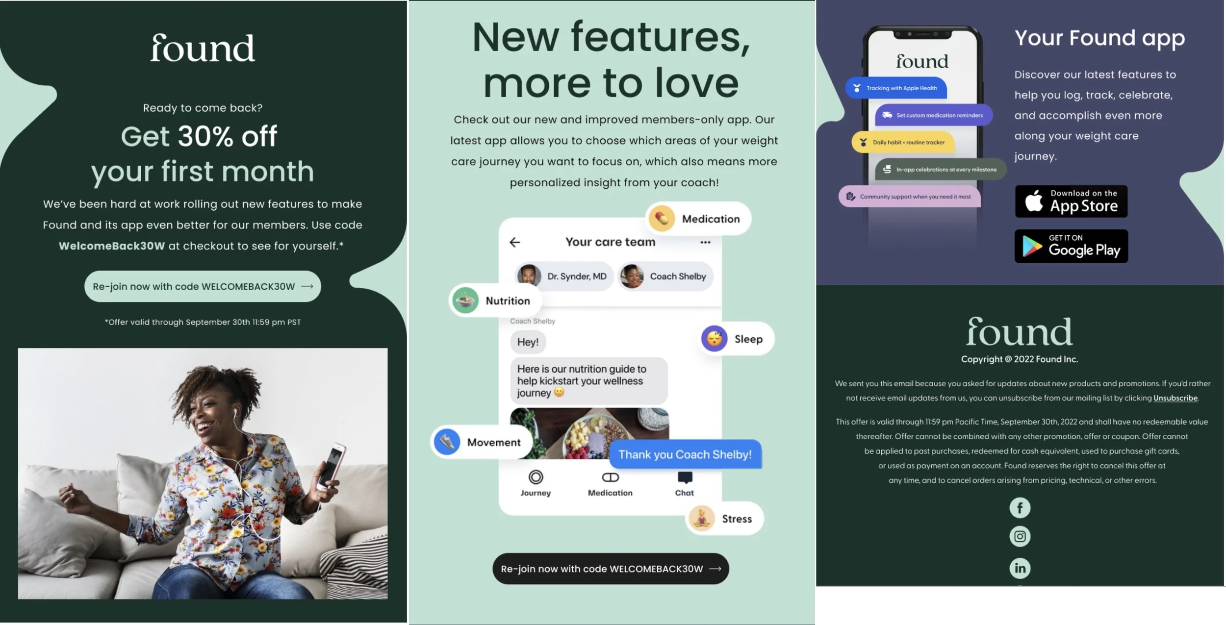 There are a lot of myths and misinformation in the weight loss space like “just eat less and exercise more.” I wanted to take a different approach — one rooted in empathy and science. I connected with our audience’s pain points and the deeper transformations they were seeking—confidence, energy, walking their daughter down the aisle. This new voice deeply resonated with our audience and resulted in,